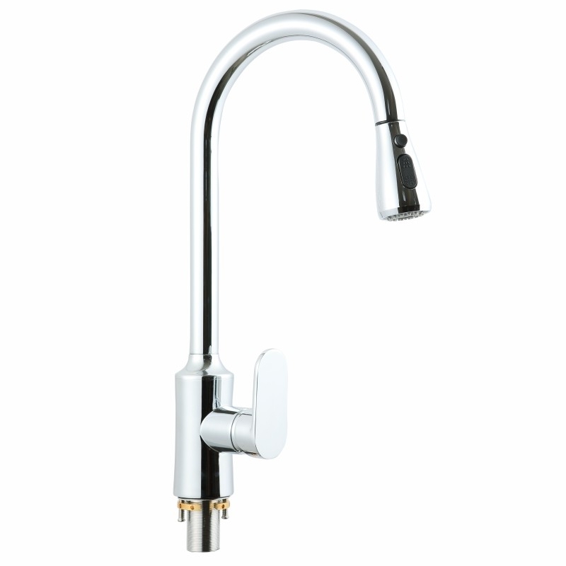 抽拉式单孔双温,塑料陶瓷40#阀芯主体黄铜,合金手柄,不锈钢管1.0mm喷头顶部开关控制花洒与水龙头出水